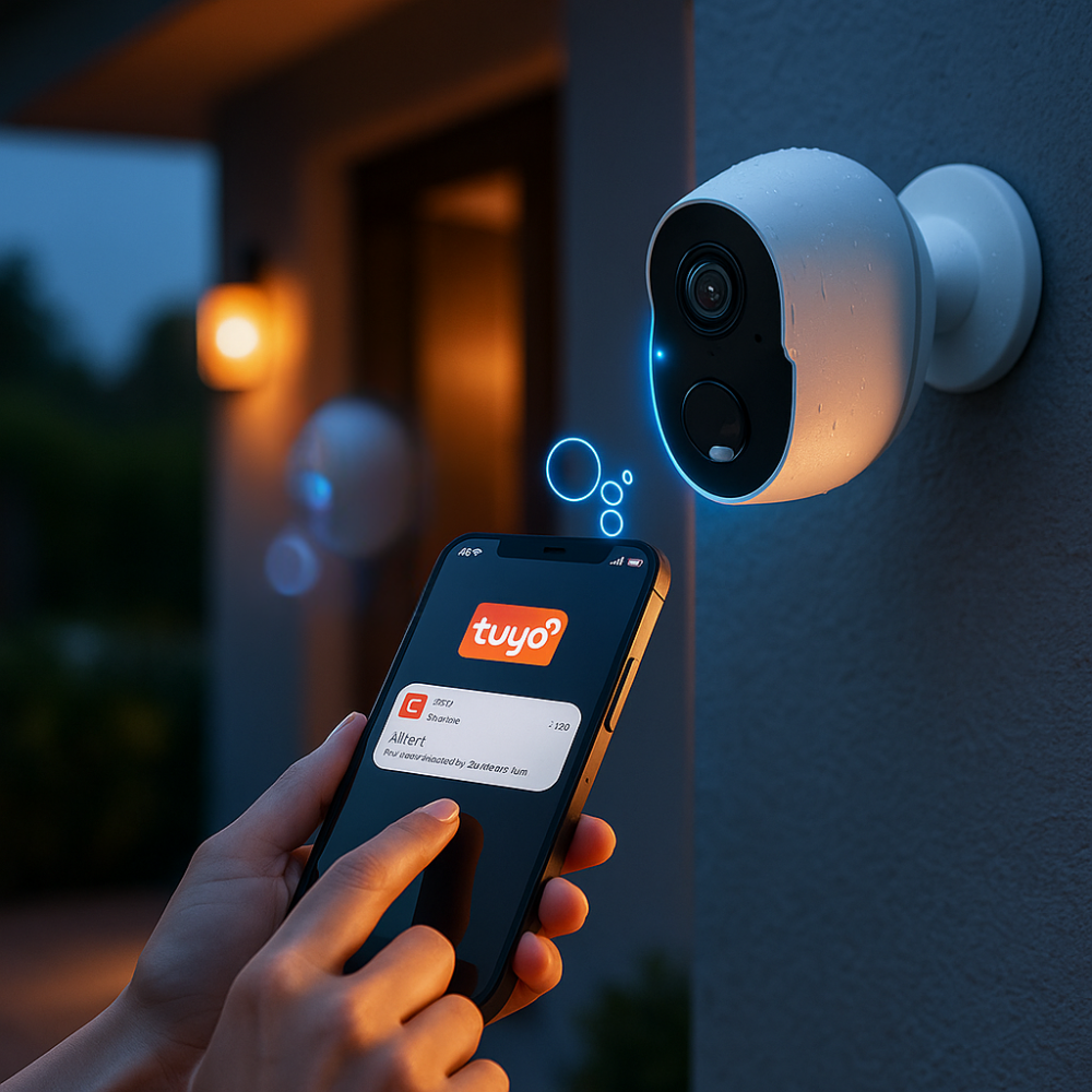 Découvrez la caméra détecteur de mouvement extérieur Tuya, conçue pour protéger vos proches et vos biens avec une précision inégalée. Équipée d’un capteur PIR ultra-sensible, d’une batterie longue durée (avec option panneau solaire pour une autonomie illimitée) et d’une vision 3MP claire de jour comme de nuit, elle transforme chaque instant en sécurité renforcée.
