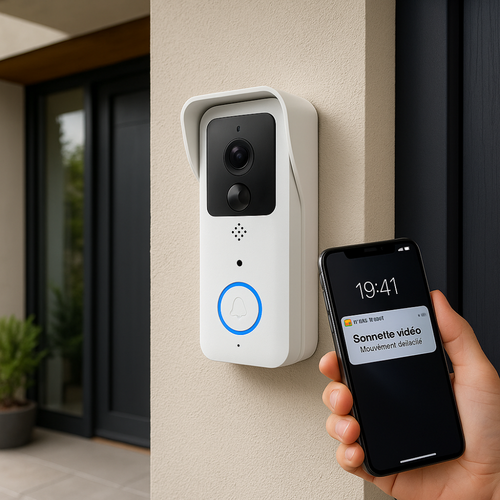 Imaginez ne plus jamais rater une visite ou une livraison. Grâce à la sonnette vidéo connectée sans fil WiFi 1080P Full HD, vous recevez instantanément sur votre smartphone une alerte dès qu’un mouvement est détecté ou que quelqu’un sonne. Avec son objectif grand-angle 166°, sa vision nocturne infrarouge et son interphone bidirectionnel, vous protégez vos proches et votre maison en toute simplicité.